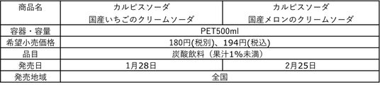 アサヒ飲料株式会社(本社 東京、社長 米女太一)は、『カルピスソーダ 国産いちごのクリームソーダ』を1月28日から期間限定発売し、『カルピスソーダ 国産メロンのクリームソーダ』を2月25日から発売します。