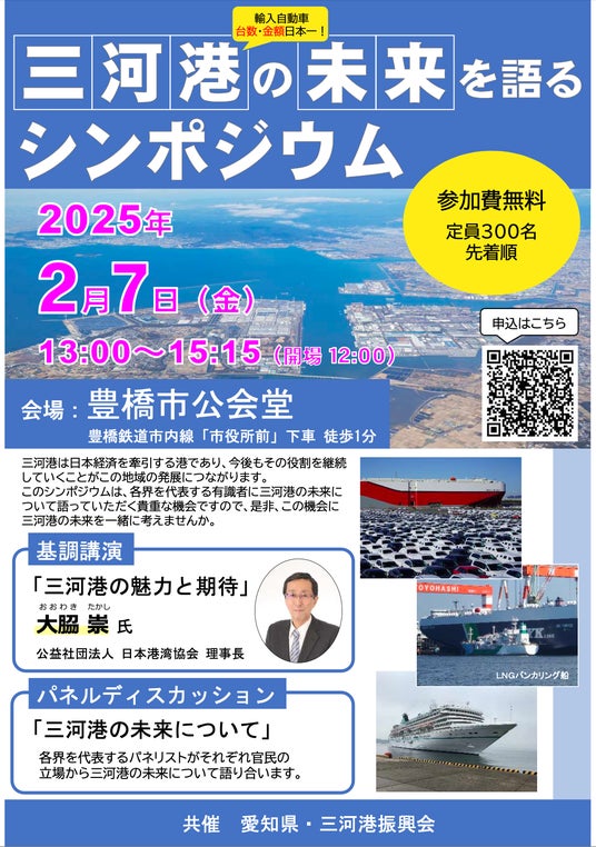 そして今後もその役割を継続していくことが、この地域の発展にもつながっていきます。そこで、この三河港をより深く理解し、その今後について考える機会として、三河港の未来について語り合うシンポジウムを開催。