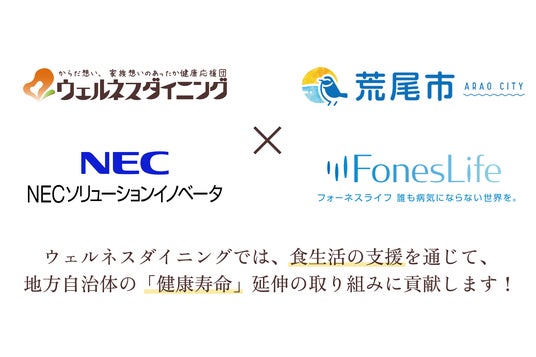 ウェルネスダイニング株式会社(本社:東京都墨田区、代表取締役:中本 哲宏)は、フォーネスライフ株式会社(本社:東京都中央区、代表取締役CEO:江川 尚人)、NECソリューションイノベータ株式会社(本社:東京都江東区、代表取締役 執行役員社長:石井 力)、および熊本県荒尾市が推進する「ウェルネススマートタウン事業(住民の健康寿命延伸プロジェクト)」に協力し、荒尾市住民50名を対象に栄養バランスに配慮した宅配食の提供を開始いたします。