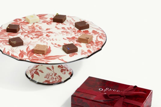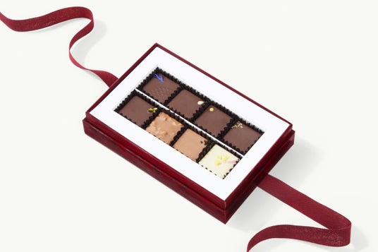 8種類のチョコレートをグッチ ロッソ アンコーラ(グッチを象徴する深みのあるレッド)にハーバリウム モチーフをあしらったエレガントなボックスにセットし、グッチ ロッソ アンコーラのリボンを結び、お渡しします。