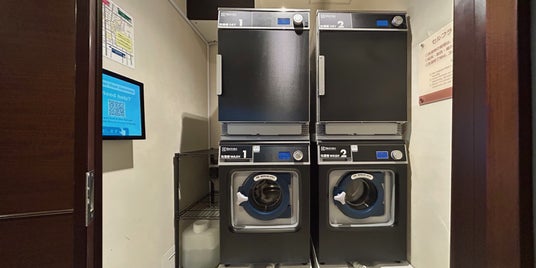フロントと同じ階の奥まった静かな場所にランドリールームがあり、ランドリー機器を2台設置。