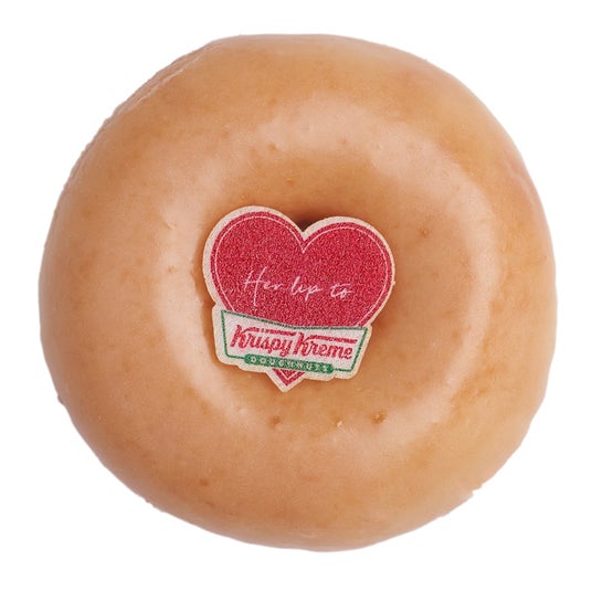 一番人気のオリジナル・グレーズド(R)を“Her lip to”とのコラボレーションロゴで飾りました。ハートモチーフのオリジナルロゴが特別感を演出します。