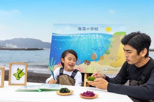 空と海と森が彩る空間で、心弾む滞在が叶うリゾート「リゾナーレ熱海」では、2025年3月1日~5月31日の毎週土曜日に、海洋環境保全団体スタッフ(*1)から海藻の現状や重要性を学ぶ旅育プログラム「海藻の学校」を開催します。今回は、地球温暖化などの影響から進行している磯焼け(*2)を水中ドローンで観察。その後、伊豆半島でこれまでに生息が確認されている10種類の海藻を使ってランチを作り、味わうことで、海藻の種類の豊富さや違いを知ることができます。体験後は、ワークシートを完成させ、学びを深めることができる旅育プログラムです。