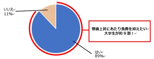 約9割の大学生が「物価上昇にあたり食費の支出を抑えたい」