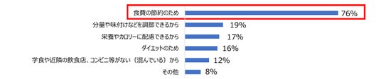 大学生が手作り弁当を食べる理由として、最も多かった回答は「食費の節約のため」という結果となりました。