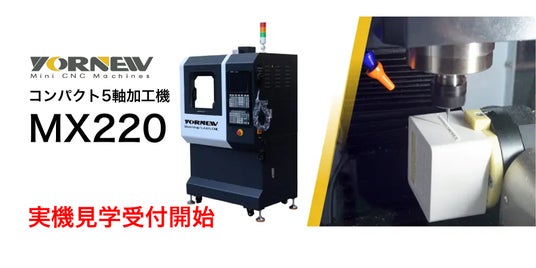 株式会社システムクリエイト(本社:大阪府東大阪市荒本新町、代表:川上正義)は、YORNEW社のコンパクト5軸加工機「MX220」の新仕様機が入荷したことを発表しました。CNC加工機は、コンパクトながら追加された2軸(回転・傾斜軸)を任意の角度で固定する手順を加えるだけで、今まで培った加工経験やノウハウをそのまま引き継ぎ、割り出し5軸加工が実現できる機械です。今回の新仕様ではご要望の多かったATCを装備したモデルをご用意いたしました。当社では、YORNEW MX220の高いパフォーマンスをより深くご理解いただくため、実機見学を実施しています。マシンベースに鉄鋳物を採用し、省スペースで非鉄金属から樹脂まで加工することができる MX220の実力をご体感下さい。