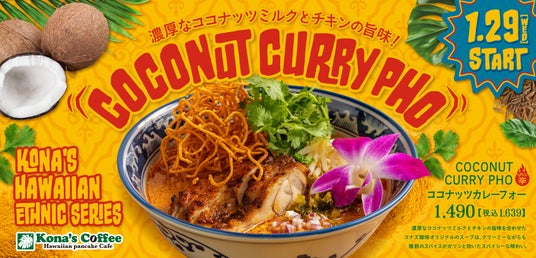 株式会社KONA’S(本社:東京都渋谷区、代表取締役社長:阿部 和剛)が展開する、食の感動体験を追求し「いちばん近いハワイ」をコンセプトに掲げるハワイアン カフェ・レストラン「コナズ珈琲」は、新商品「ココナッツカレーフォー」を2025年1月29日(水)から2月28日(金)まで、全国のコナズ珈琲にて販売いたします。
