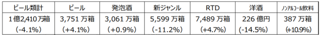 *単位:ビール類・ノンアルコール飲料 大びん633ml×20本換算、RTD 250ml×24本換算