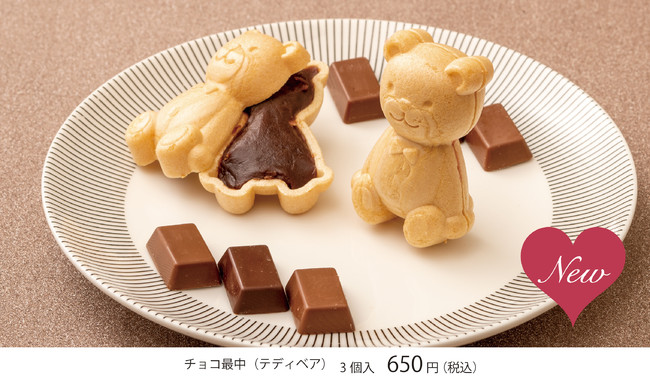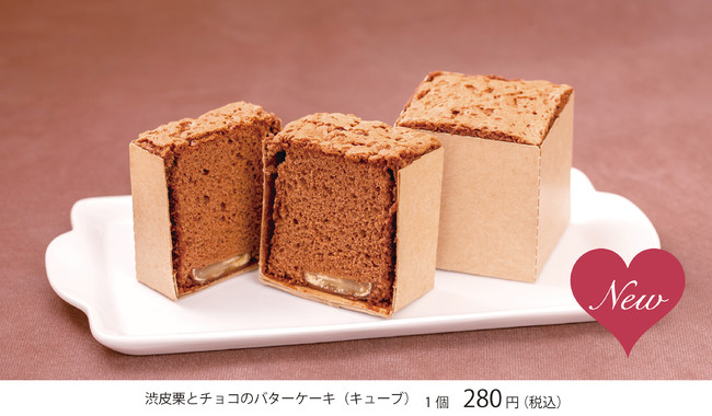 新商品の「渋皮栗とチョコのバターケーキ」、「チョコ最中(テディベア)」は贈り物にも、自分へのご褒美チョコとしても、お召し上がっていただきたい仕上がりです。