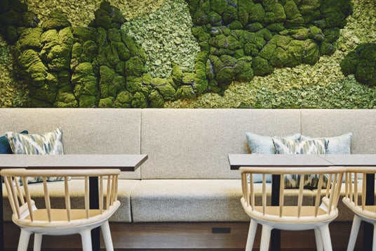 ガーナーホテル大阪本町北船場は、大阪の商人の街としての活気や人々のつながりを現代的に表現した空間です。グリーンを基調にしたデザインは、自然との調和を象徴し、持続可能性を重視しています。オーバーハングや自然素材を使った空間が温かみと未来的な要素を感じさせます。モダンなグリーンのオーバーハングデザインに苔が自然なテクスチャーを加え、豊かな緑が空間を彩ります。視覚的に柔らかさを加え、オーバーハングの構造と一体となって、未来的でありながら自然との調和を感じさせる空間を提供します。都市空間に自然のエネルギーを注ぎ込み、訪れる人々が心地よくリラックスできる場所を提供します。過去の商人の街並みに新たな命を吹き込むかのように、未来に向かう大阪の姿を感じながら「活気」と「つながり」を視覚的に演出しています。