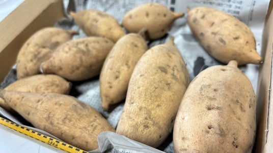 今年度の収穫量は20tで、来年度の目標は30tを目指している。生芋の販売は4月末までの予定で5kg箱と10kg箱がある他に、プリンなどのスイーツ作りに業務用芋ペーストも販売している。生芋、ペーストともに無くなり次第に終了。