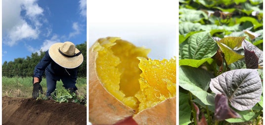 実は安納芋には2種類ある。一般的に安納芋として流通しているのは「安納紅」という品種で、もう一つは「安納こがね」である。後者は栽培難度が高く収量が安定しない上に皮が薄く約1ヶ月かかる熟成期間中にも傷みやすく、栽培を断念する農家があとを立たたない。そのため、年々「安納こがね」の栽培面積は減り、希少価値が高まった影響で『幻の芋』との異名がついている。しかしその味はというと、独特の風味と深いコクは「安納紅」と比べて明らかに違う。そしてさらに特筆すべきはなんと言ってもその水分量だ。焼き芋や蒸かし芋にした時のネットリ感は、近年ブレイクしている「紅はるか」や「シルクスイート」に勝るとも劣らず、ファンから根強い人気がある。