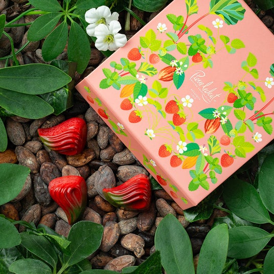 香り豊かなストロベリーのガナッシュに、ルバーブならではの爽やかな酸味と華やかな緑が心地よい余韻を演出。思わずじっくり浸りたくなる至福のショコラ。