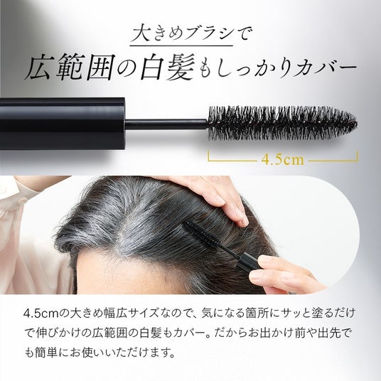 お出かけ前に気になる白髪を手軽にサッと隠せる、国産馬油配合(保湿成分)のヘアマスカラ。使うたびに徐々に染まり、重ねて数回塗布することで自然な仕上がりに着色します。髪色に合わせてナチュラルブラック、ダークブラウン、ライトブラウンの3色から選べます。シリコン、ジアミン系染料、酸化剤、鉱物油不使用。