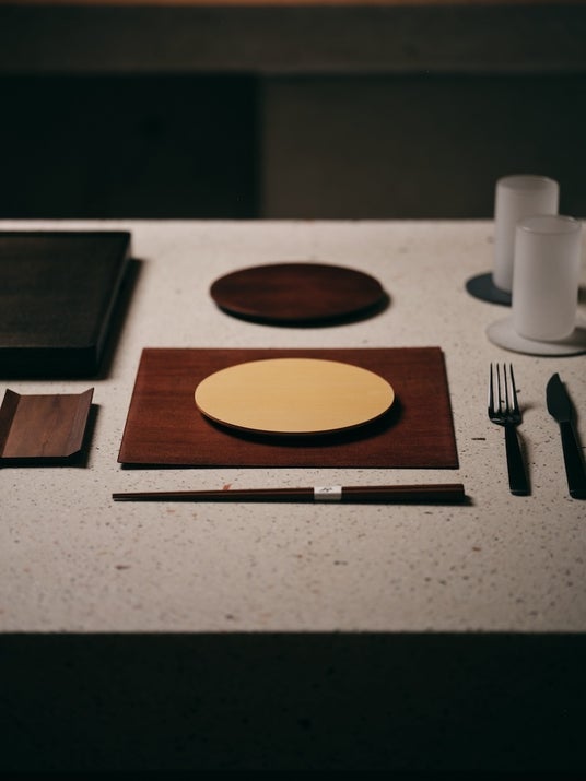 食器やカトラリーでも同様に、越前が誇る製品を採用しています。日本六代古窯の越前焼は、素朴でありながら越前の食材を引き立ててくれます。 そんな一つ一つの食器に向かい、シェフは感性の全てを注ぎ込みます。ナイフは、越前打刃物。世界のトップシェフ達が、わざわざ越前に買い求めに来る洗練された切れ味とデザイン性の高さ。越前漆器の器は、漆を塗り重ねることで上品かつ艶やかな塗り肌がありつつも、軽さと丈夫さも兼ね備えています。