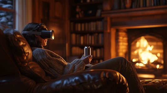 Apple Vision Proを装着することで、まるで森の中や焚き火のそばにいるような臨場感あふれる仮想空間が広がります。空間オーディオと組み合わさることで高い没入感を生み出し、ユーザーはお酒を楽しみながらリラックスできる環境を体験できます。