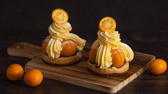 フランスの伝統菓子サントノーレを、宮崎県生まれの貴重な種なしきんかん『みやざき夢丸』を使用してアレンジしました。サクサクのシュー生地と酸味のあるクリーム、そして甘いきんかんが織りなす至福の時間をご堪能ください。