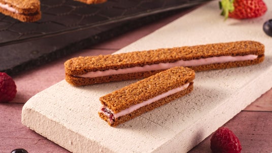 アーモンドとベリーは相性抜群。北千住マルイ店のオープンに合わせて、大人気のフレーバーが期間限定で帰ってきます。4種のベリーを使ったクワトロベリーソースをベリーショコラで包み、ザクザク食感のアーモンドクロッカン生地でサンドしました。4種のベリーはストロベリー、ラズベリー、ブルーベリー、カシスを使用しており、絶妙なバランスで甘味と酸味が感じられます。