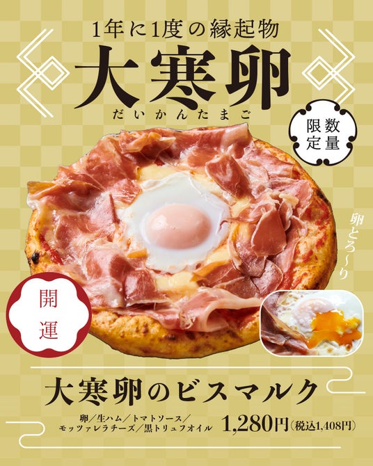 元祖地ビール屋サンクトガーレンの樽生ビール20種が楽しめる直営ビアバー「サンクトガーレン タップルーム(本厚木駅ビル 本厚木ミロード2. 1階/オーナー 岩本伸久)」は2025年1月20日(月)より、大寒卵を使った「大寒卵のビスマルクピザ」を販売します。