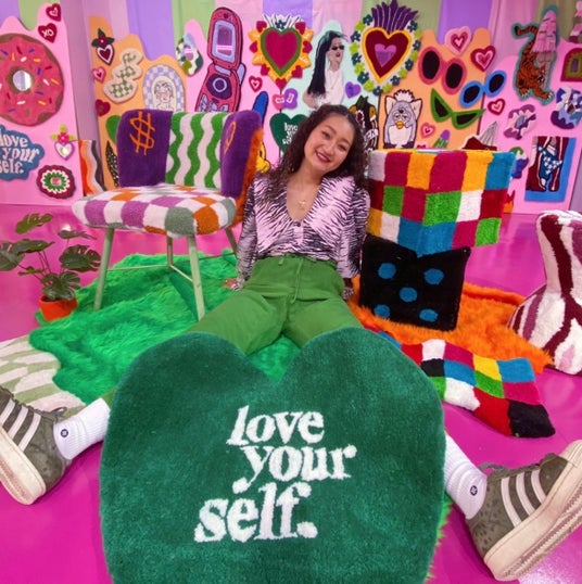 タフティングやレジン、アクリルや陶器など様々な手法を用いて作品を生み出すアーティスト。