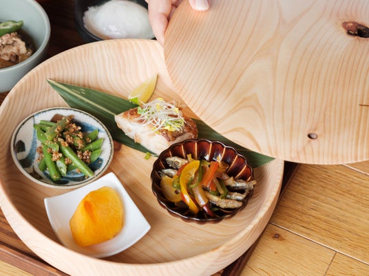 五島の食材を使った手作りの朝食を、五島のヒノキから削りだされたオリジナルの木箱に詰めて提供します。あたたかい手触りの木箱の蓋を開けると美味しそうな香りとともにお料理が姿を現し、朝のわくわくするひとときを楽しめます。