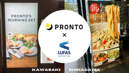 世界最大級の新聞印刷会社、東日印刷株式会社(本社:東京都江東区、社長:西川 光昭、以下TONICHI)が製造・販売する環境にやさしいファブリック・サイネージ「LUFAS(R)(以下、ルーファス)」が、株式会社プロントコーポレーション(本社:東京都港区、社長:杉山和弘、以下 プロント)が運営する飲食チェーン「PRONTO」の品川店およびアトレ川崎店のエントランス看板に採用されました。時間帯別に、4種類のメニューデザインが登場します。全国約200店舗を展開する飲食チェーンでのルーファス採用はこれが初となります。