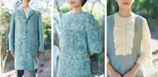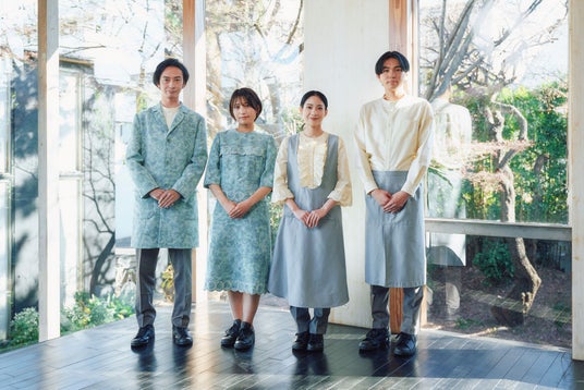 レセプションスタッフ、ホールスタッフのそれぞれに2種類、計4種類のデザインを決定しました。いずれも、業務上のオペレーションを妨げないゆとりと着心地を考慮しながら、「ミナ ペルホネン」を代表する刺?柄“tambourine(タンバリン)”模様※1をあしらうなど、装飾的な表情を加えています。水や空気の流れを感じるテキスタイルとやわらかなシルエットで、お客様にとってユニフォームも美しい景色として映るようにデザインされています。