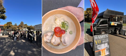 無料のラーメンをSNSで知った学生、食べた学生から情報を聞きつけ行列に並んでくれた方、