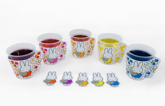 Flower Miffy POP UP SHOP限定ドリンク「フラワーミッフィー フラワーカラフルティー」は、ローズをイメージしたピンク色のローズヒップティーや、ネモフィラの花弁の青色を思い起こすようなレモングラスとバタフライピーのブレンドティーなど、商品名にお花の名前がついた全5種のハーブティーです。ドリンクには各色に合わせたフラワーミッフィーオリジナルのスリーブが付属し、耐熱の透明カップで提供するので、フルーツのシロップで甘さをプラスしたお茶の風味だけでなくカラフルな見た目もお楽しみいただけます。