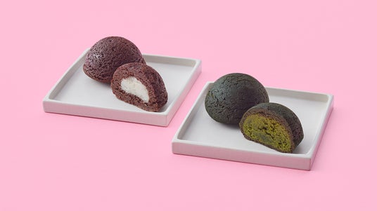 カカオを感じられるほろ苦いチョコレート生地に、しっとりとした白餡を包みました。割った時のチョコレート生地と白餡のコントラストも美しく、見た目も可愛らしい一品です。