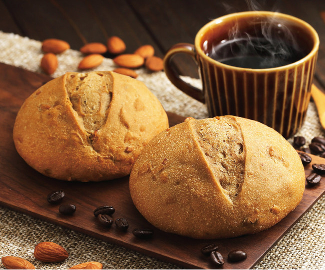 電子レンジで50秒(500W)温めるだけの手軽なふんわりおいしいパンです。コーヒー粉末とローストアーモンド、アーモンドミルクを練り込み、石窯で焼き上げました。コーヒーの苦みを残しつつも何もつけずに食べやすいようにほのかに甘さを感じる味わいに仕上げました。