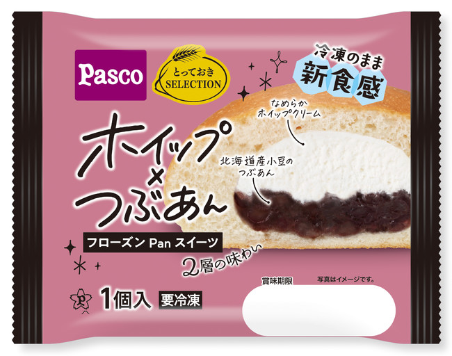 北海道産小豆使用の粒あんと冷凍に適したなめらかなミルク風味のホイップクリームを包みました。冷凍でも食べやすい硬さの餡に仕上げています。
