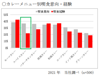 まっています。喫食意向は高いものの、経験率は低く、他メニューと比較してもギャップが大きいた