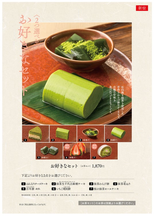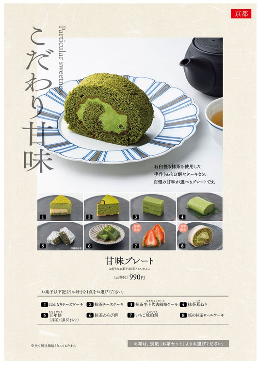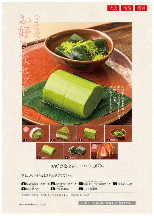 カフェメニューでは、選べるセットに「桜の抹茶ロールケーキ」が追加!