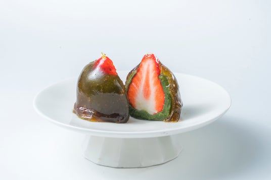この時期だけの“旬”を味わうまるごと苺を一粒、こだわりの特製餡と共にぷるっぷるのわらび餅で包み込んでいます。一つひとつ職人が手仕込みで仕上げており、販売予定期間は紅ほっぺが美味しく収穫できる1月中旬~4月上旬頃までの期間限定品。