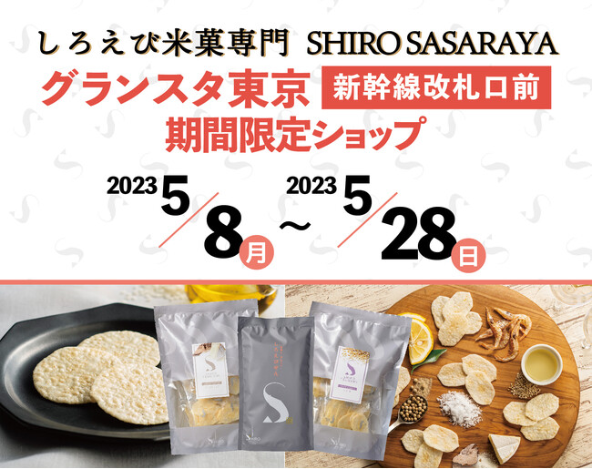 創業99年の老舗米菓メーカー日の出屋製菓産業株式会社(本社:富山県南砺市、代表取締役会長:川合 声一)の新ブランド、しろえび米菓専門「SHIRO SASARAYA」は、グランスタ東京にて5月8日(月)~5月28日(日)まで期間限定出店いたします。