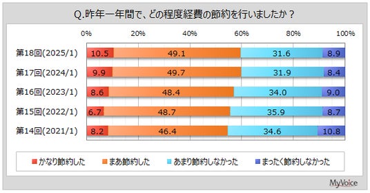 マイボイスコム株式会社(東京都千代田区、代表取締役社長:高井和久)は、18回目となる『くらしと節約』に関するインターネット調査を2025年1月1日~7日に実施しました。