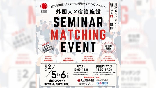 全国約4,600以上の観光施設に特化した人材サービス事業を展開する株式会社ダイブ(東京都新宿区、代表取締役社長:庄子潔、証券コード151A、以下「ダイブ」)は、観光庁が主催する特定技能の宿泊分野に関するセミナーおよび特定技能人材と宿泊施設の就職マッチングイベントを運営し、2月5日(水)・2月6日(木)に開催される「宿フェス」内で実施いたします。