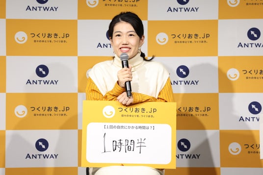 発表会前半では株式会社Antway代表取締役社長CEO 前島恵より、会社紹介や今回新たに実施した共働き世帯の料理事情の結果を発表しました。後半では、3児のママとして活躍中の横澤夏子さんが登壇し、調査を基に横澤さんの自炊エピソードをお話しいただくほか、「つくりおき.jp」にちなんだトークを展開いただきました。