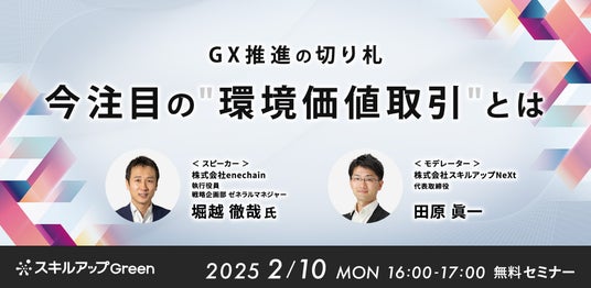 株式会社スキルアップNeXt(東京都千代田区、代表取締役:田原 眞一、以下「スキルアップNeXt」)と株式会社enechain(本社:東京都港区、代表取締役:野澤 遼、以下「enechain」)はアライアンス契約を締結し、両社の顧客企業等に対する環境経営支援サービスを強化します。