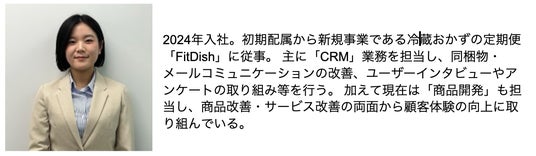 新規事業「FitDish(フィットディッシュ)」については「冷蔵のおかずパウチを宅配するサブスクリプションサービス」と説明し「おまかせ診断で顧客に合わせた商品を届ける点が特徴」だと強調しました。2023年9月にサービスを開始し、当初は主に共働き世帯をターゲットとしていたものの、現在は20代から60代以上まで、幅広い世代や世帯にご利用いただけるサービスとして発展を続けています。