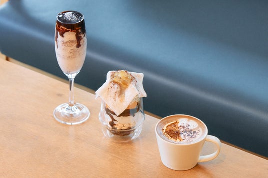 2月は「チョコレート」を贅沢に使用したオリジナルドリンクを販売いたします。チョコレートの味を引き立たせる牛乳とバニラアイスのシェイクの上に鏡のようなチョコレートグラサージュを乗せ、ケーキの「オペラ」に見立てた「ショコラヘーゼルナッツシェイク」と、ビターチョコレートに柑橘を組み合わせた大人のチョコレートラテ「ショコラオランジュラテ」をご用意いたしました。2月限定の「チョコレート大福パフェ」とご一緒にお楽しみください。