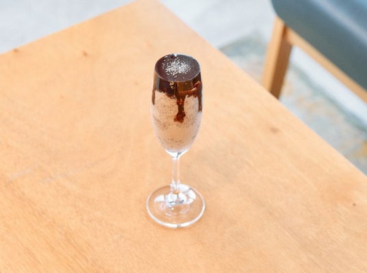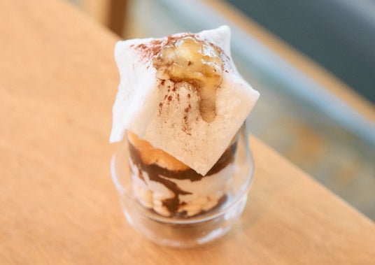 「チョコレート」と「大福」、「チョコレート羊羹」、「ポン菓子」を組み合わせた期間限定パフェ