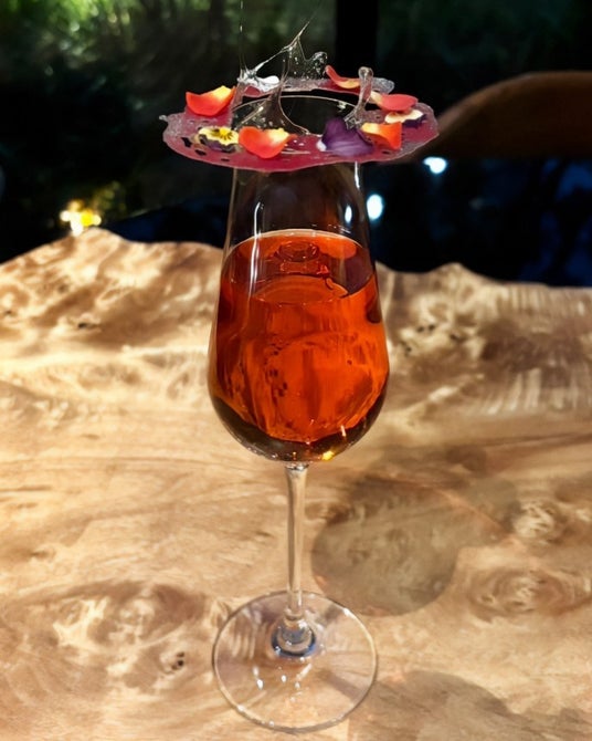 口元に運ぶと、軽やかなローズの薫りが楽しめるウォッカベースのカクテルです。自家製ローズウォーターにエルダーフラワーやラベンダーの薫り豊かなハーブをブレンドした、味わいはもちろん見た目も華やかなバレンタインにぴったりな一杯をお楽しみください。さまざまな方にお楽しみいただけるようモクテルもご用意しております。