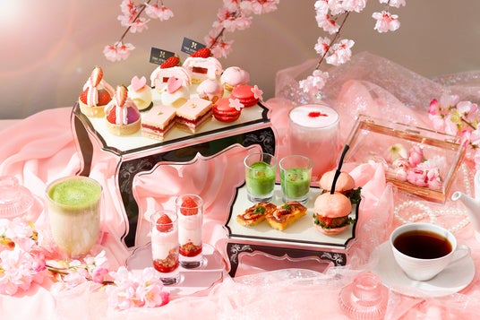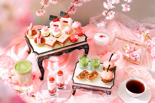 春の訪れを象徴する桜と甘酸っぱいいちごが彩る華やかなアフタヌーンティーは、お花見ティータイムをテーマに、いちごづくしのスイーツと旬食材を使用したセイボリーを揃え登場いたします。