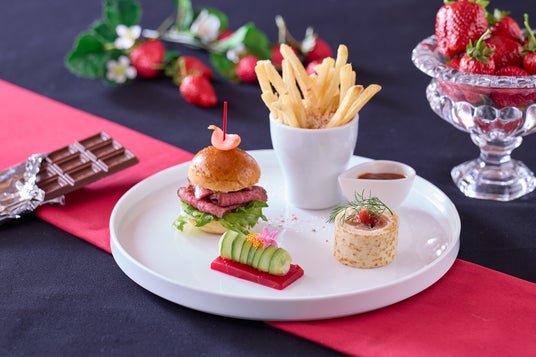 その他、フレンチシェフが作る「ズワイガニとアボカドのカネロニ仕立て」や「和牛ローストビーフプチバーガー」などをご用意し、本格的なセイボリーがアフタヌーンティーをより一層引き立てます。