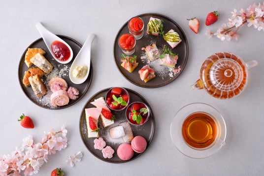 豊洲にあるレストラン「ザ ペントハウス ウィズ ウィークエンド テラス」では、いちごや桜をふんだんに使用した春らしさ満開のスイーツと、セイボリーに加えてウェルカムドリンクに桜のスパークリングやモクテルをご用意。豊洲36階の開放的な空間とともに、豊富な自家製デザートと豊洲直送素材を使用したセイボリーで、贅沢なアフタヌーンティーを心ゆくまでお楽しみください。
