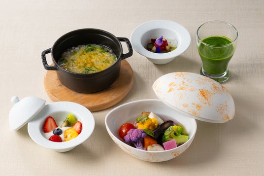 総料理長田原英俊がこの企画のために考案したオリジナルメニュー。一つ一つのお料理から季節や大地の恵みを感じられるように彩られ、酵素を意識した調理法や食材選びにより、目に美しくカラダにやさしい洗練されたプチ・ファスティングメニューが完成いたしました。