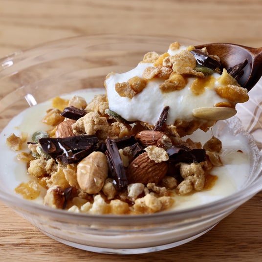 はちみつ、ナッツ、ドライフルーツなどをトッピングしてスイーツとして