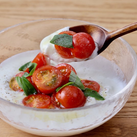 フレッシュチーズ感覚でトマトやバジルと合わせて、カプレーゼ風に